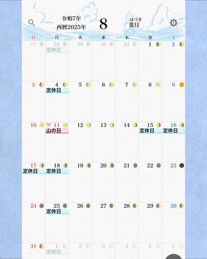 4日(月)、15日(金)〜18日(月) 、25日(月)は定休日とさせていただきます